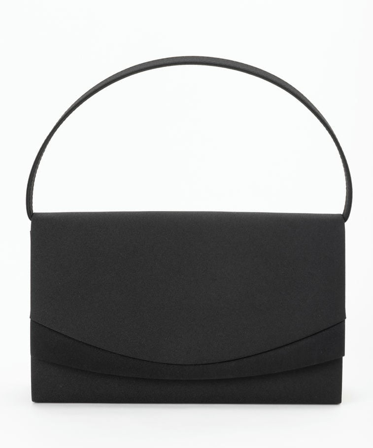 異素材を組み合わせた二重のフラップデザインが特徴のフォーマルバッグ。シンプルながらさりげないデザインが光ります。