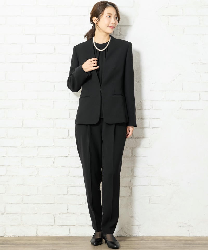 INFINE アンフィニ 【ショートサイズ】Vネックジャケット&ジョーゼットブラウス&テーパードパンツスーツ