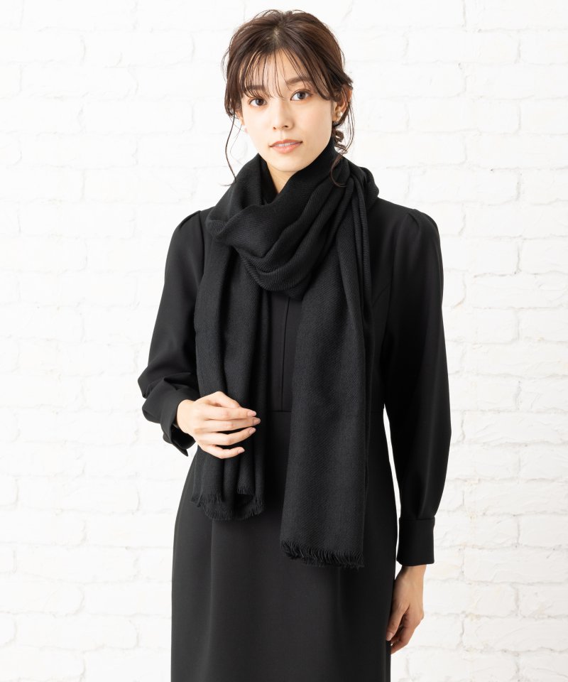 フォーマル用に仕立てたハンドメイドで、薄手かつ控えめなフリンジ加工がフォーマルシーンに相応しい仕上がりとなっています。折り畳んでマフラーやひざ掛けに、広げて肩に羽織らせてショールにとアレンジも自在です。