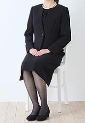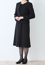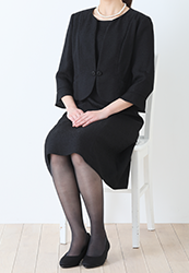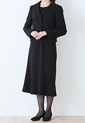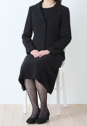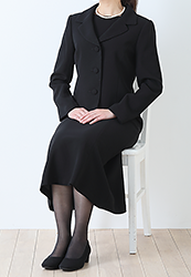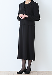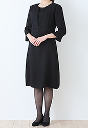 ゆったりとしたシルエットで窮屈感も軽減され、長めの丈感はブラックフォーマルスーツを着た際にバランスが取りやすいデザインとなっています。小さくソフトな肩パット入りで、ゆったりシルエットながら型崩れせず綺麗なラインをキープしれくれます。